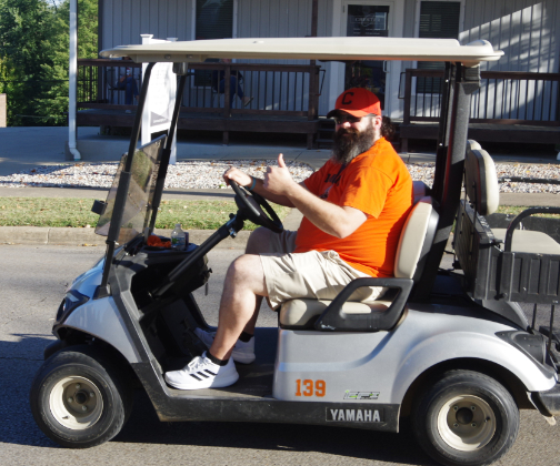 CHS Student Council Co-Sponsor Erin Conley was Co-Coordinator of the 2025 Homecoming Parade with fellow Co-Student Council Sponsor Amy Miller. Shown here Conley is checking out the flow of the parade on the CHS Golf Cart. Jim Beers Photo