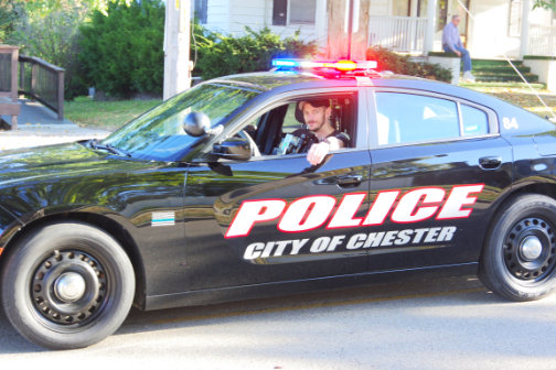 City of Chester Police Officers lead and take up the back of the 2025 CHS Homecoming Parade to provide safety to parade participants. Jim Beers Photo