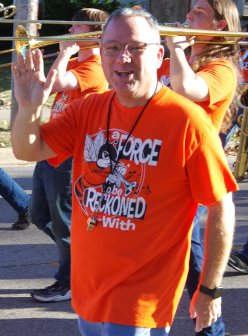 CHS Marching Yellowjackets Band Director, Steve Colonel, in his final CHS Homecoming Parade as he will retire at the end of the 2025-26 school year! Jim Beers Photo