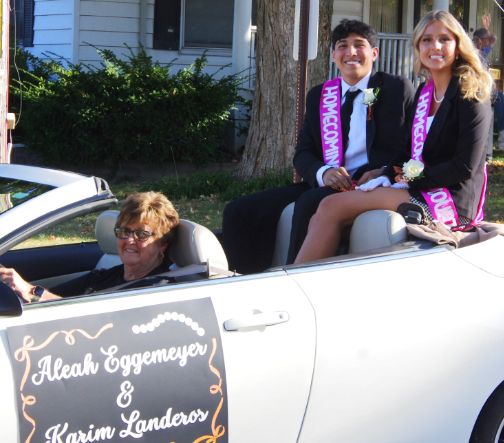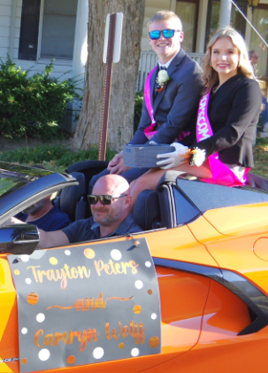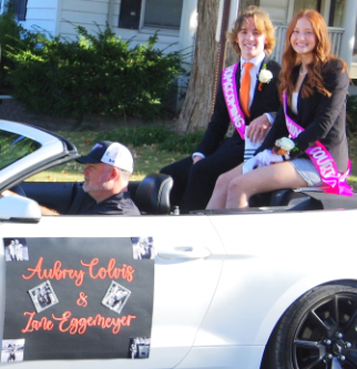 All five of the King and Queen Candidates were also in the parade including junior Candidates Aubrey Colvis and Zane Eggemeyer and Aleah Eggemeyer and Karim Landeros, and senior Candidates Maggie Caby and Ethan Colvis, Callie Davis and Brayden Juenger, and Camryn Wolff and Tray Peters.