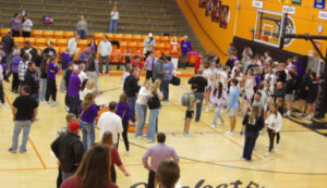 Breese Central fans celebrated for almost 45-minutes after their Lady Cougars beat Nashville, 58-48, to win the 2026 IHSA Class 2A Girls’ Sectional Basketball Tournament Championship Thursday February 26 at Chester High School. Some fans were still on Colbet Memorial Gym floor as most other people had left. Jim Beers Photo
