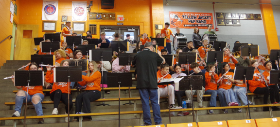 In spite of being done with the 2025-26 Chester Basketball season, the Chester High School Pep Band joined force for one final week of performances for the 2026 IHSA Class 2A Chester Sectional hosted by CHS. It was Band Director Steve Colonel’s final game as he will be retiring at the end of the school year. Fans from most all teams that visited Chester High School games complimented Mr. Colonel for the popularity of the CHS Pep Band throughout the 2025-26 season. Jim Beers Photo