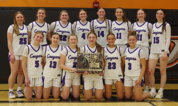 The Breese Central Lady Cougars are the 2026 IHSA Class 2A Chester Sectional Basketball Champions after beating Nashville, 58-48 Thursday February 26 at Chester. Pictured (Front row, left to right) Tori Garcia (5), Aubrey Timmermann (13), Mallory Shubert (2), Ella Nettemeier (1), AlexiaMorris (23), and Lilly Hennrichs (3). (Back row, left to right) are Hayleigh Holtmann (25), Alyssa Moore (10), Kendyl Poettker (22), Madelyn Luebbers (4), Lexy Santel (14), Taylor Trame (11), Jillian Beckmann (21) and Lily Butler (15). Jim Beers Photo