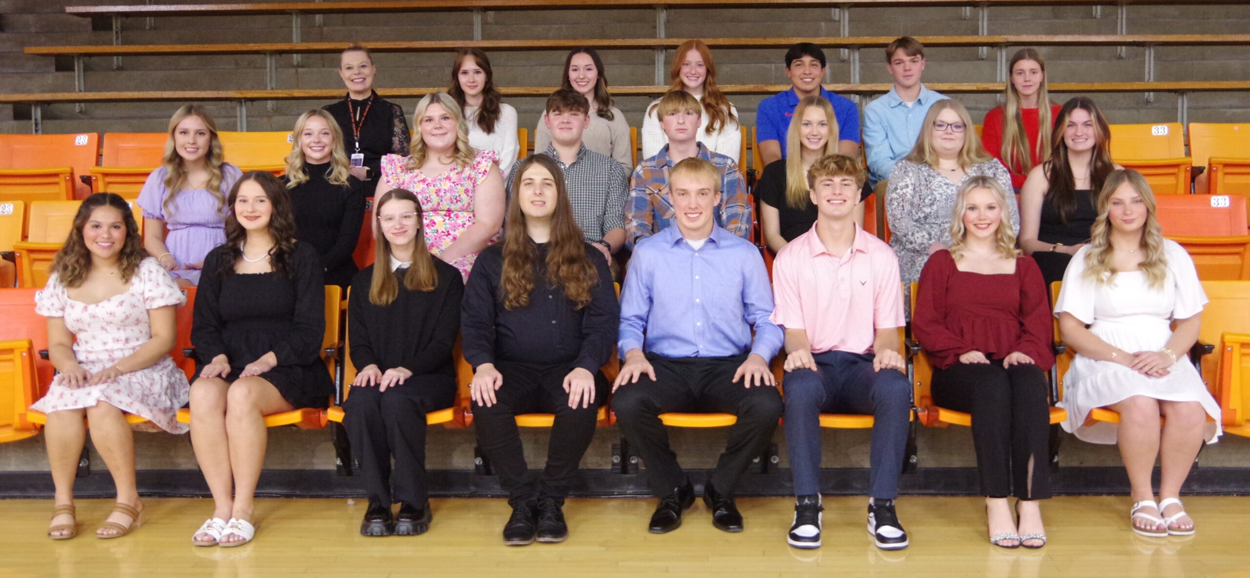 Monica Anaya, daughter of Juan and Tera Anaya; Jackie Bess, son of Jessica Gromelski and stepson of Aaron Wunderlich; Logan Brace, son of Hubert and Cristie Brace; Hayden Cartwright, daughter of Shellie and Kevin Cartwright; Revolution Chaput, daughter of Shaun and Emily Chaput; Aubrey Colvis, daughter of Kyle and Jennifer Colvis; Ethan Colvis, son of Matt and Carrie Colvis; Lexie Davis, daughter of Jamie Davis and Loren Gimber; Aleah Eggemeyer, daughter of Brian and Carrie Eggemeyer; Joella Eggemeyer, daughter of Nate and Terra Eggemeyer; Addison Gottschammer, daughter of Jeremy and Chrissy Gottschammer; Baily Hartman, daughter of Mike and Pam Cole; Annah Helvey-Ahring, daughter of Shane Helvey and Angela Ahring; Kross Jany, son of Matt and Kasi Jany; Grace Kirkpatrick, daughter of James and Sarah Kirkpatrick; Karim Landeros-Alvarado, son of Paty Hernandez; Treyton McCartney, son of Mike and Heather McCartney; Anna Menefee, daughter of Tessa Menefee and Heath Menefee & stepdaughter of Cindy Menefee; Kaylee Rogers, daughter of Julie Rogers and Markum Rogers; Isabel Smith, daughter of Audra Steiner and Alex Betuski; Katie Werner, daughter of Angie and Randy Werner; and Elizabeth Wilson, daughter of Chris and Nicole Long and Nick Wilson.