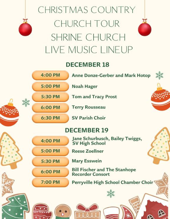 The Shrine Church in Perryville, No. 1 on the list, has annuonced this list of musical performances for Thursday and Friday.