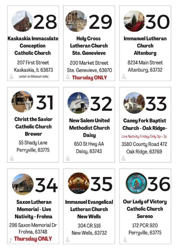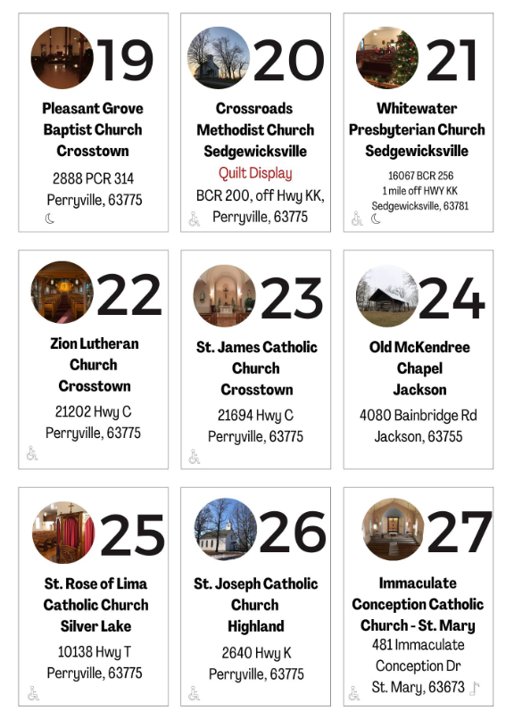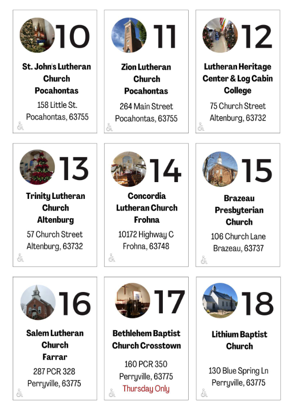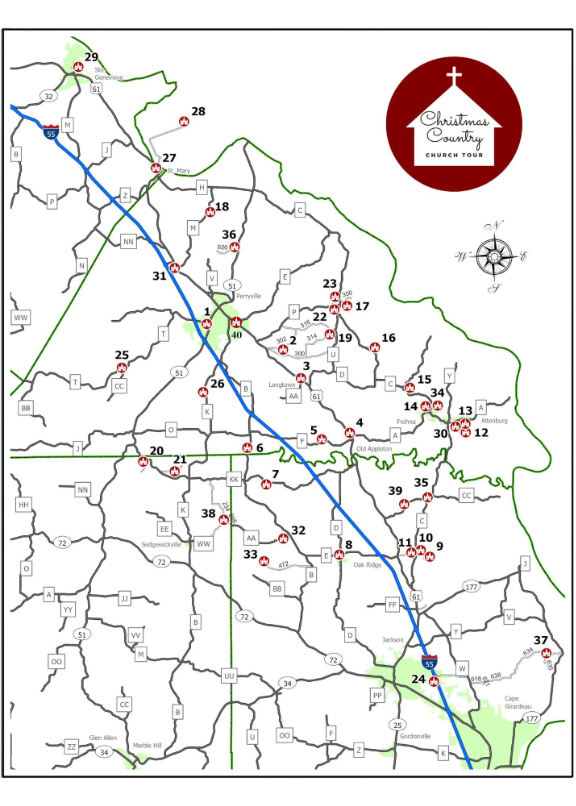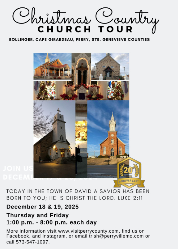 PERRYVILLE – The Christmas Country Church Tour begins today and continues tomorrow, from 1-8 p.m. each day.