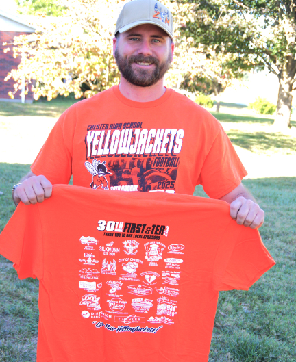 CHESTER – The Chester High School 1st and Ten promotion was back at CHS home football games again for the 2025 football season. For 30 years local sponsors have made sure that each time the Yellow Jackets get a first-and-ten at CHS home games, a 1st and Ten T-shirt is thrown into the crowd.