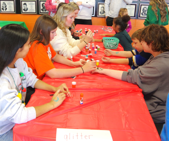 Student Council members were offering Glitter Tattoos to children at yet another station. At another station, Council members assisted kids in writing letters to Santa Claus. These letters could then be personally handed to Santa during their visits with Santa.