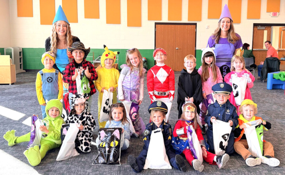 On Friday, October 31, from 9:30–10:15 a.m. CDT, approximately 75 preschool and Early Childhood Special Education (ECSE) students dressed in costume and “trick-or-treated” through the building, making several stops along the way. Guests, as well as Early Childhood Center staff, handed out treats, glow bracelets, stickers, temporary tattoos and play dough.
