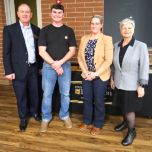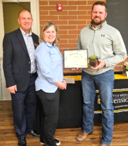 MU Extension Regional Director Matt Herring and former Council Chair Missy Marberry presenting awards to Nick Hermann, a Leader’s Honor Roll recipient.