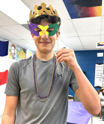 Throughout the day, students learned about Mardi Gras traditions while participating in hands-on activities such as mask making and bead crafts. Each class also shared a King Cake, a traditional Mardi Gras dessert that contains a small baby figurine baked inside. The student who found the baby in their slice was crowned the next “king” for the year!