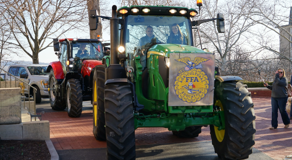 Governor Kehoe, accompanied by Missouri FFA President Ivy Elwell, kicked off the day by driving a John Deere tractor from the Governor’s Mansion to the Capitol, in celebration of FFA’s longstanding tradition of students driving their tractors to school during National FFA Week. Missouri Director of Agriculture Chris Chinn, a fifth-generation farmer, drove a Case IH tractor and was joined by Missouri Department of Elementary & Secondary Education Commissioner Karla Eslinger, who lives on the family farm in Ozark County.