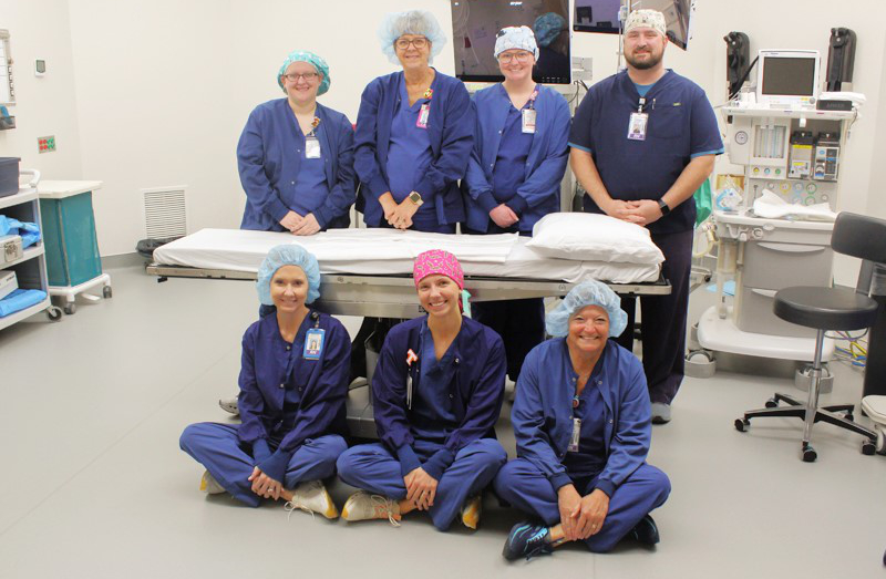 The OR staff gathers on the new surgical suite flooring following a successful upgrade.