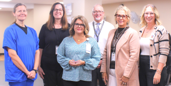 (L-R) Amy Mathis, Cardiac Pulmonary Rehab Nurse Supervisor; Melissa Soellner, Registered Dietitian Nutritionist; Kelly Jany, Nurse Manager; Brett Bollmann, CEO; Susan Diddlebock, Chief Nursing Officer; Mariah Bargman, Marketing and Community Relations Manager.
