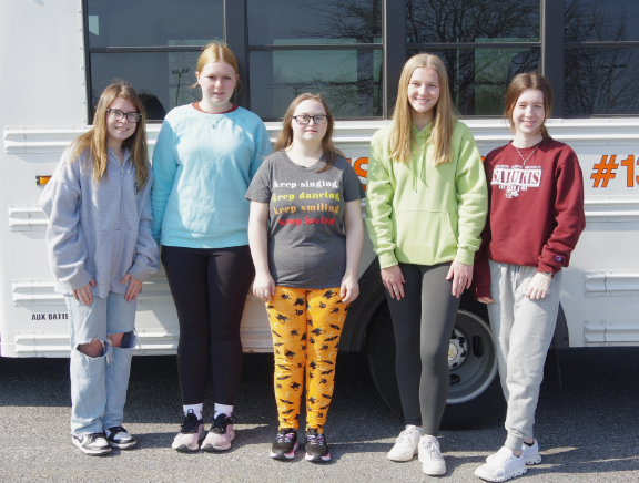 Five volunteers from Chester High School assisted with the March 25, 2026, Mobile Market. The event was sponsored by the Chester Area Christian Food Pantry. The group helped sort, organize, and distribute food items as well as clean up the area following the distribution process. Pictured (left to right) are Mackenzie Diemund, Peyton Dickson, Leslie Asbury, Erin Liefer, and Rylie Myers. Jim Beers Photo