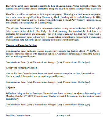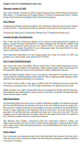 Perry County Commission meeting minutes released / News, Perryville News PERRYVILLE – The minutes of the October 23 meeting of the Perry County Commission have been released.