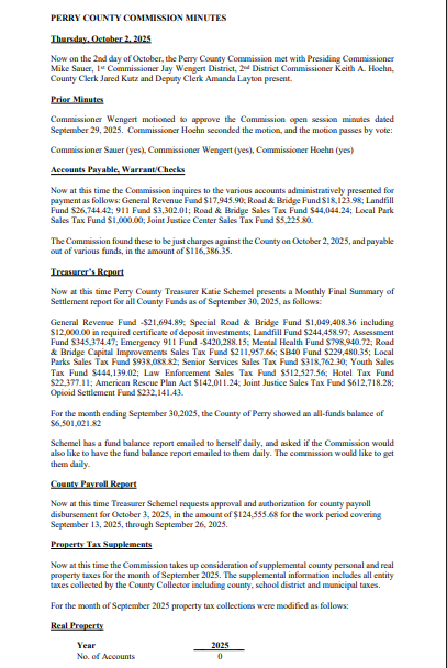 Perry County Commission meeting minutes / News, Perryville News PERRYVILLE – The minutes of the October 2 meeting of the Perry County Commission have been released.