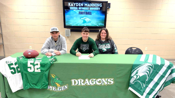 STE. GENEVIEVE – Ste. Genevieve High School senior Kayden Manning has signed a national letter of intent to play football at Central Methodist University.