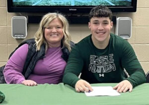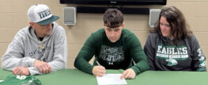 In attendance at a signing ceremony at school were his parents; his sister, Leyla; and friends and teammates Alex Basler, Eli Bennett, Colton Brace, Luke Ferranto, Wyatt Grein, Jeffrey Hunter, Landyn Jones, Julian O’Neill, Ethan Ottens, Talan Pinkley, Drew Roth, Paul Taylor, Mason Trollinger, Jacob Warren, Jett Weibrecht, Noah Willett and Chase Yamnitz.