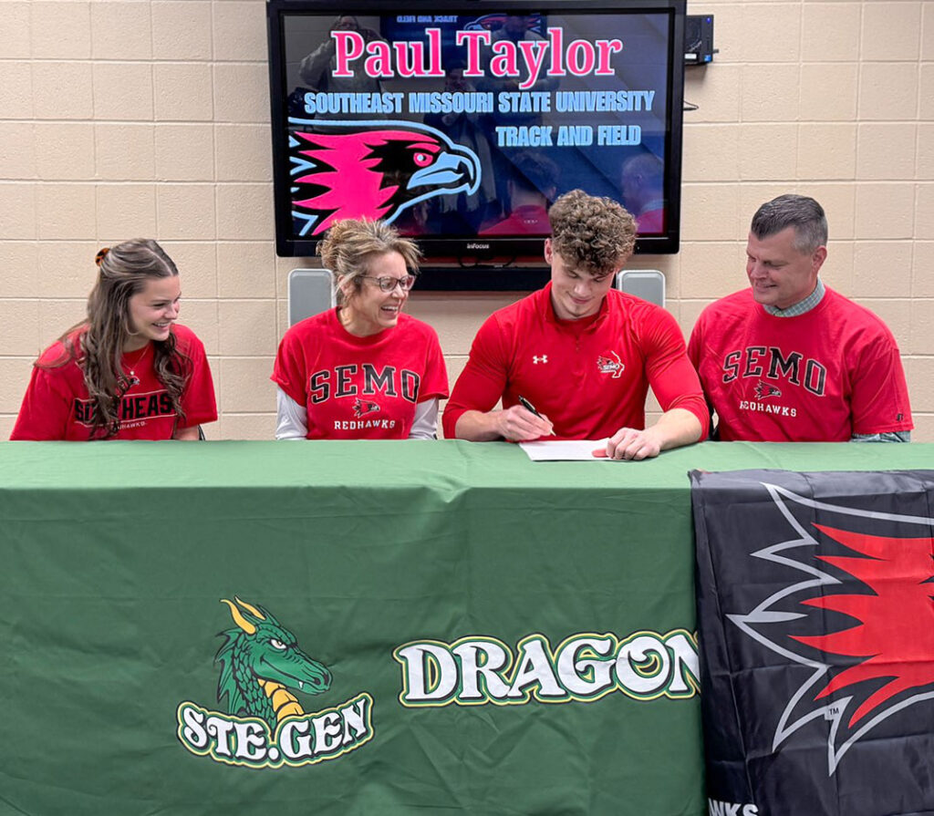 STE/ GENEVIEVE – Ste. Genevieve High School senior Paul Taylor signed a national letter of intent to compete on the track and field team at the Southeast Missouri State University (SEMO) Thursday, February 5, 2026.
