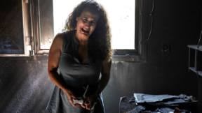 A juried, traveling exhibition featuring some of the top women photojournalists in Washington, D.C., is on display at Sharp Museum this semester, including this one by Pulitzer Prize-winning photojournalist Evelyn Hockstein of a woman in her mother’s burned-out home after the October 2023 attack by Hamas gunmen. (Photo by Evelyn Hockstein)