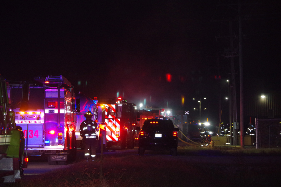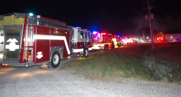 By 4 am there were approximately 12 or more emergency vehicles, tanker trucks and fire trucks lining the road in front of and leading up to the box plant.