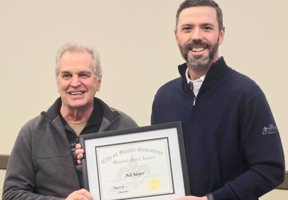 STE. GENEVIEVE – Ste. Genevieve Mayor Brian Keim presented his very first Mayoral Merit Award Thursday evening to Bill Naeger at the regular meeting of the Board of Aldermen.