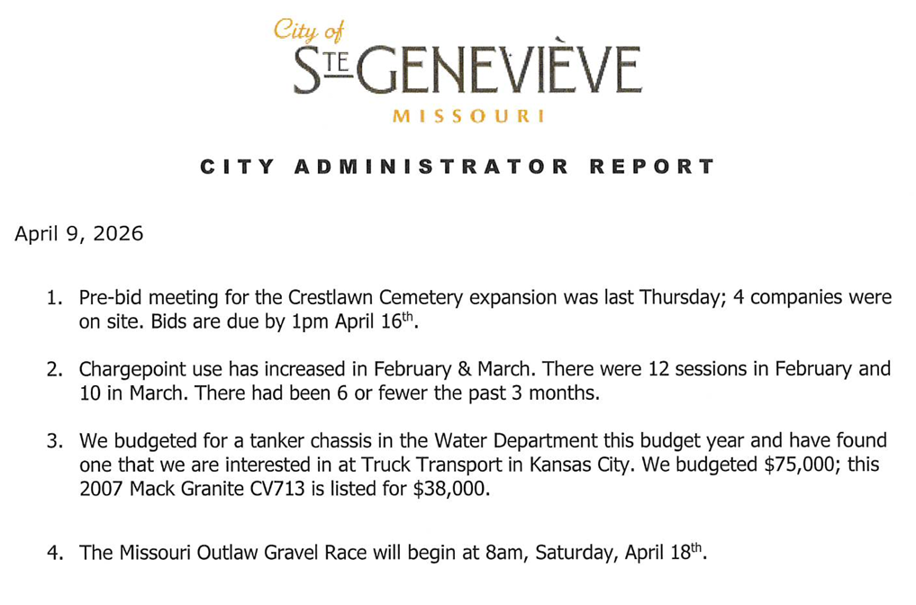 The City Administrator report: