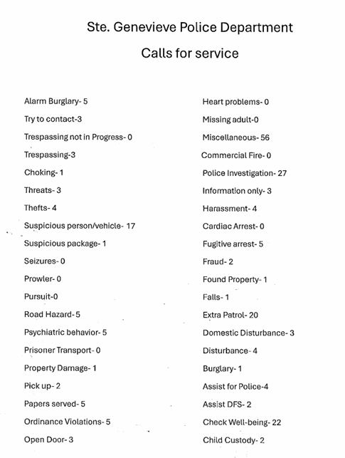 STE. GENEVIEVE – The Ste. Genevieve Police Department has released its monthly operations report for November 2025.