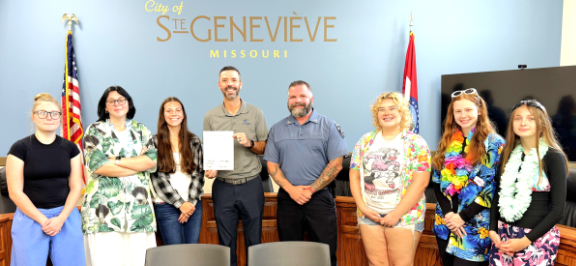 Last week, students from the Students Against Destructive Decisions (SADD) organization gathered at city hall with Ste. Genevieve Mayor Brian Keim and Police Chief Dan Halek to sign a Proclamation declaring Oct. 27 – 31 to be Red Ribbon Week in Ste. Genevieve.