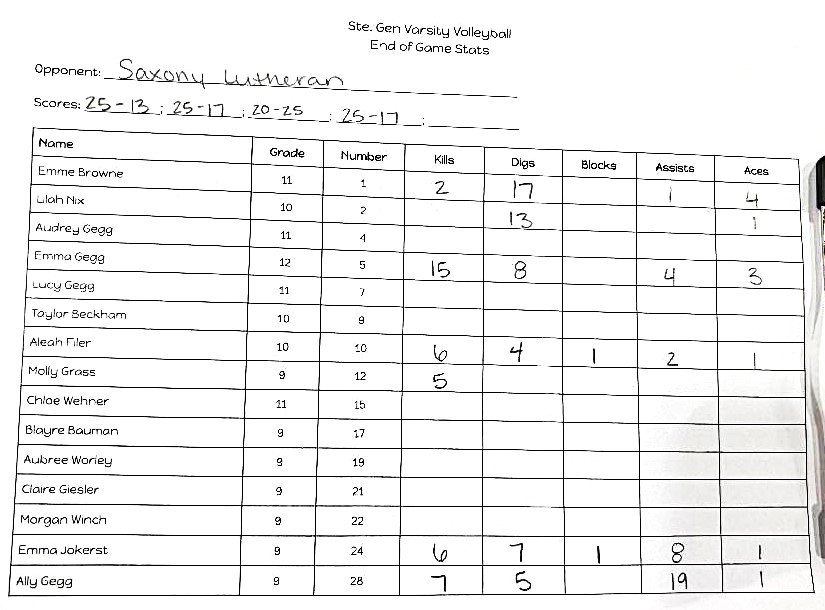 STE GENEVIEVE — The Varsity Volleyball Dragons recorded a 4 set victory over Saxony last night at home.