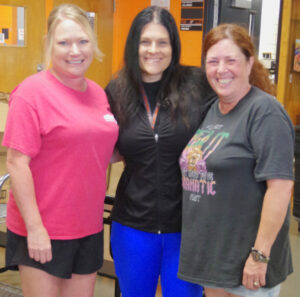 Pictured are USDA “Sun Meals To-Go” staff inside the James F. Sharp Cafeteria at Chester High School. Food bags were filled and arranged for delivery at that location. (left to right) are Michele McConnell, Carrie Eggemeyer, Program Manager, and Brandie Stefani. Jim Beers Photo